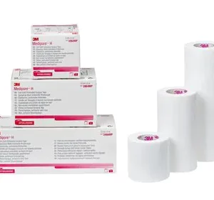 Cinta de tela suave no tejida, adaptable, sin látex, hipoalergénica, con mayor adherencia y suavidad para aplicaciones complejas. Se encuentra disponible en rollos de diferentes medidas. La cinta cuenta con un precorte cada 5cm. La cinta médica de tela suave no tejida 3M™Medipore™ H se vende sin esterilizar. Los métodos que se mencionan a continuación se probaron y demostraron ser confiables para una esterilización y adhesión estable. Los residuos de óxido de etileno se ajustan holgadamente a las pautas de la Administración de Medicamentos y Alimentos de los EE. UU. Procedimiento: 1) Los rollos de cinta se conservan intactos hasta su longitud total de 9,14 m, 2) Las tiras de cinta se disponen sobre una superficie de liberación adecuada, por ejemplo, vidrio, acero inoxidable, papel con tratamiento de silicona, 3) Una almohadilla de 3 láminas de cinta, 4) Se aplica la cinta para sellar la bolsa o el envoltorio de esterilización adecuados, 5) Ciclo de esterilización por óxido de etileno por calor 55 °C. Plazo de exposición mínimo: 1 hora (50% RH-600 mg/litro, o su equivalente), 6) El ciclo por calor (cuya temperatura no debe superar los 55 °C) se airea durante al menos 20 horas antes de utilizarlo. Las organizaciones encargadas del cuidado de la salud tienen la responsabilidad de confirmar la esterilidad del producto cuando este se esterilice dentro de sus instalaciones.